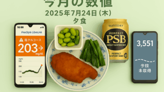 今日の数値 糖尿生活・今日の記録 2025/07/30(水)