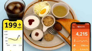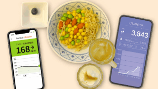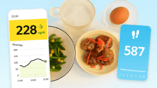 本日の血糖値、食事内容、歩数計などを記録しました。