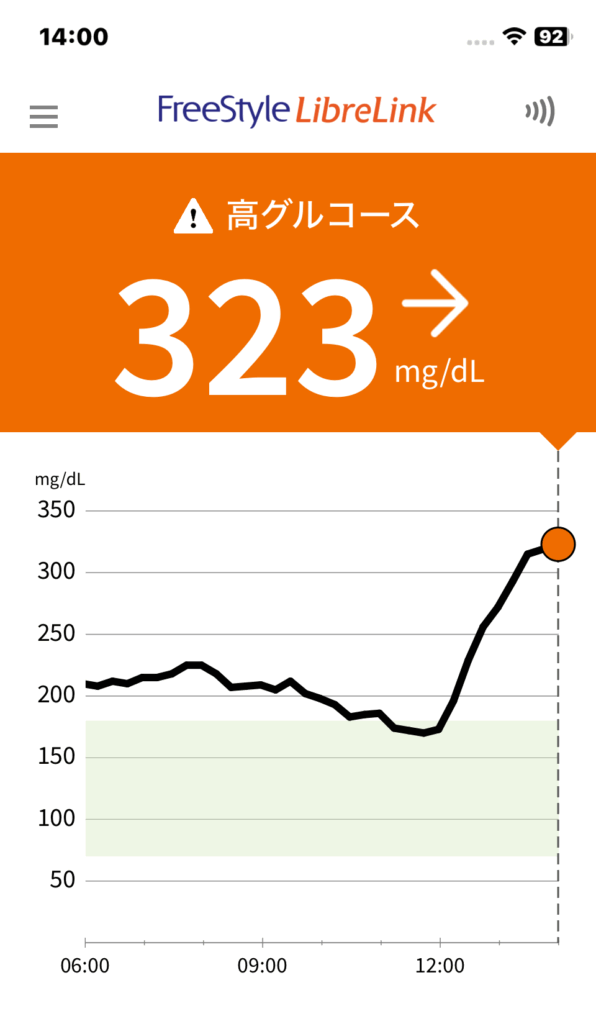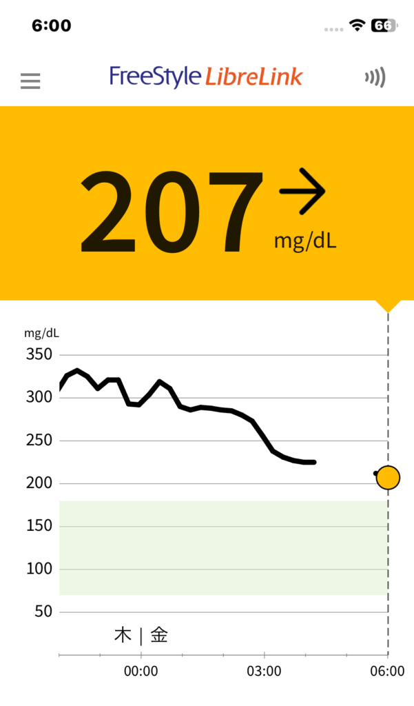 今日の血糖値の推移