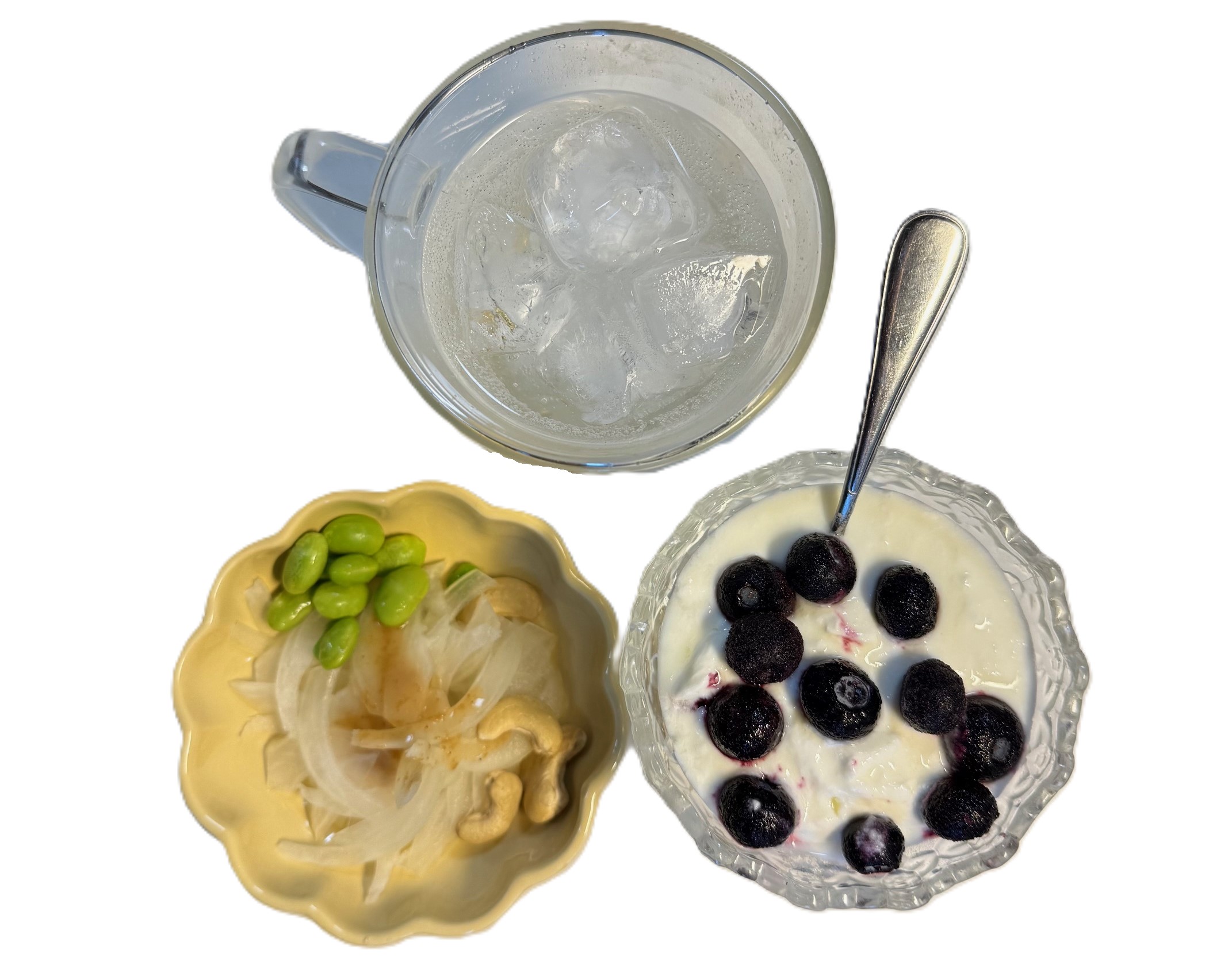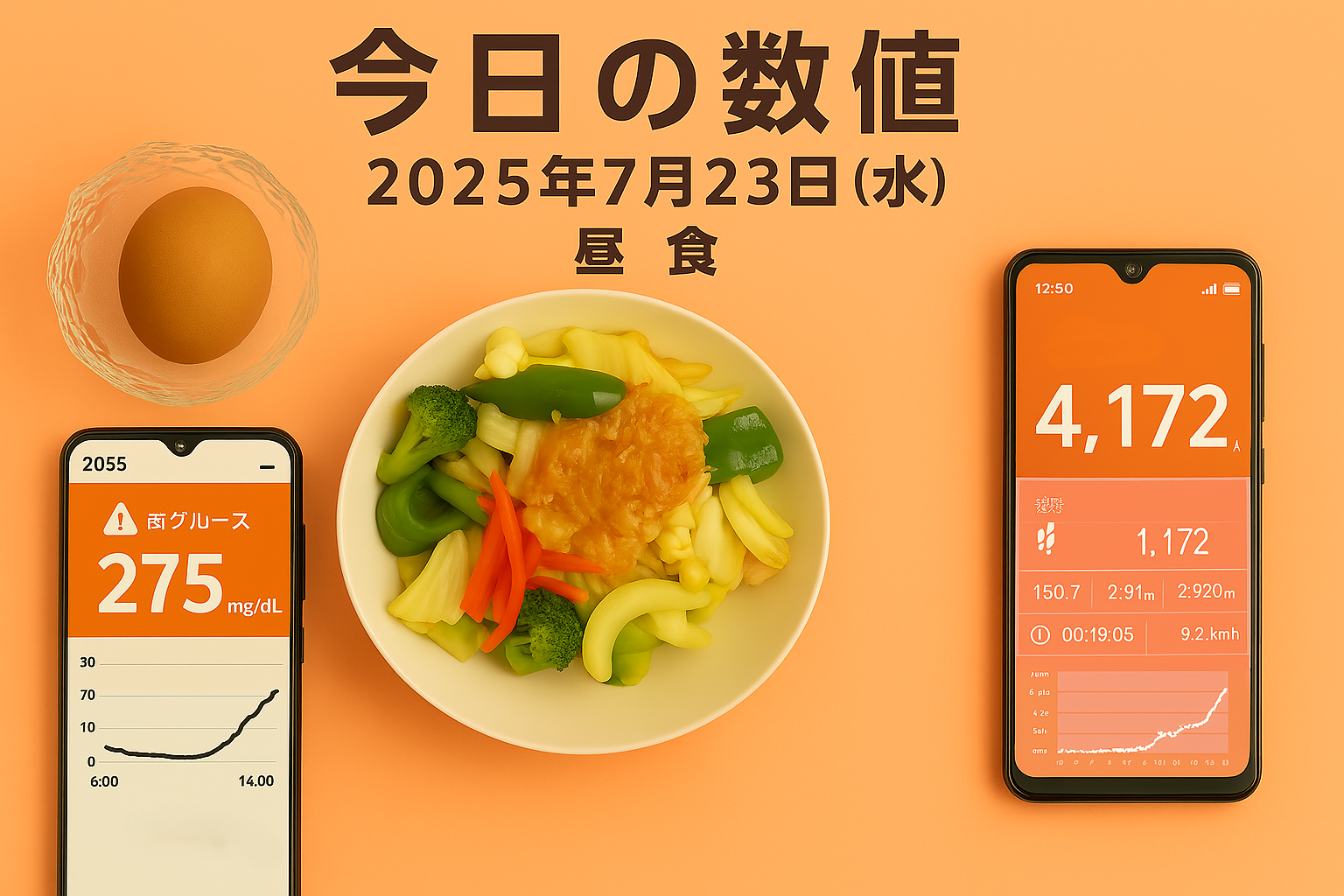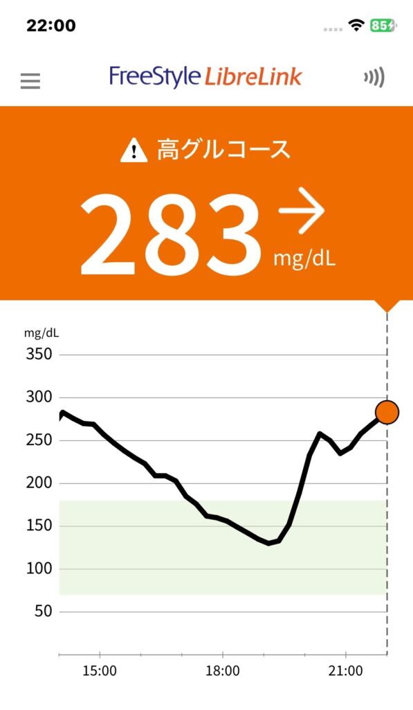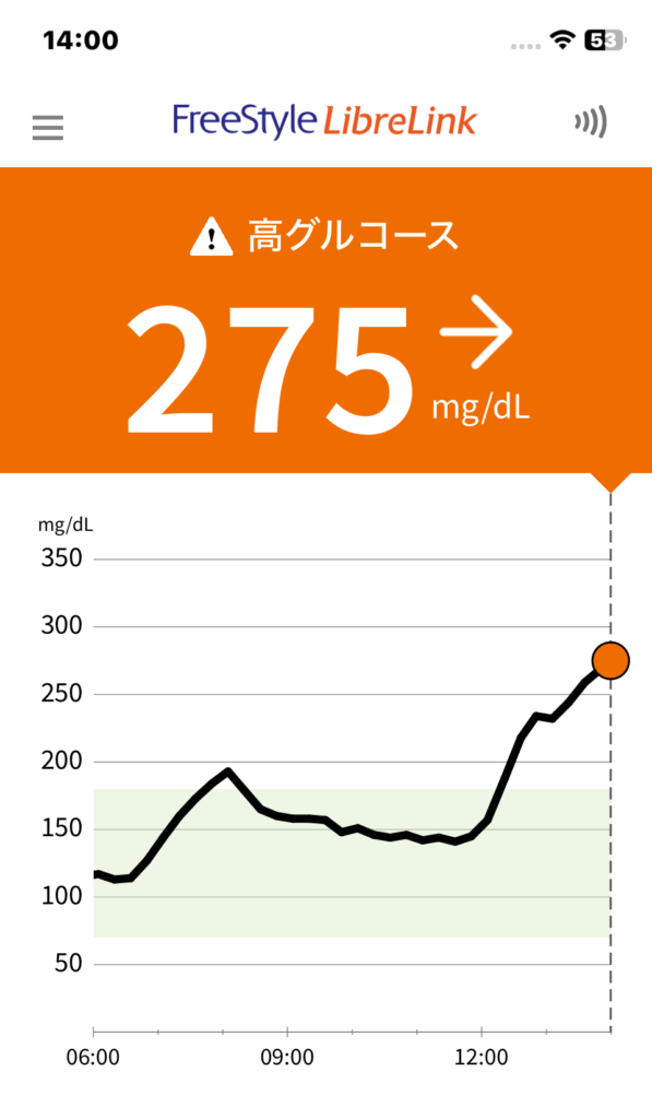 朝少な目の朝食、昼は野菜炒めゆで卵。その後お菓子を食べたら血糖値が結構あがりました。