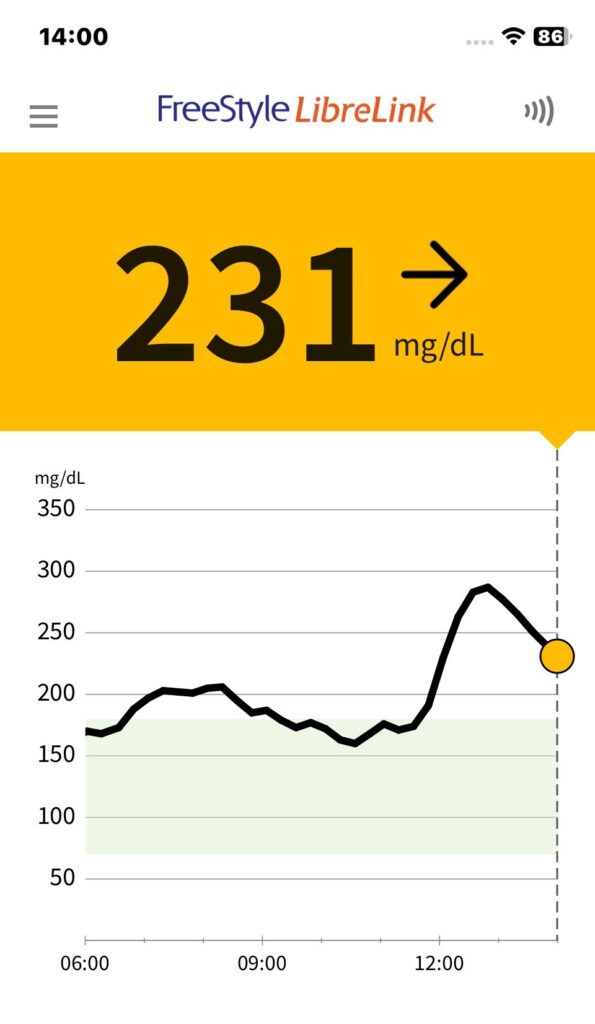 糖尿生活・今日の記録 2025/07/28(月) 今日の数値 X Facebook はてブ Pocket LINE コピー 2025.07.29 目次 今日の血糖値前日22:00 ~ 6:006:00 ~ 14:0014:00 ~ 22:00今日の食事朝食 6:15投薬 6:30昼食 11:00投薬 18:00夕食 18:10夜食 間食 今日の運動ウォーキングその他の運動メモ 今日の血糖値 前日22:00 ~ 6:00 6:00 ~ 14:00 昼食後どうしてこんなに上がったのかわからない。オートミール(炭水化物)か甘く煮てある椎茸か? 14:00 ~ 22:00 今日の食事 朝食 6:15 量:Sキャベツ千切りコーンナッツブルーベリー小 投薬 6:30 トラゼンタ 5mg 昼食 11:00 量:Nオートミール枝豆ワカメブロッコリー椎茸昆布煮小ゆで卵 投薬 18:00 トレシーバ 8単位 夕食 18:10 量:Nほうれん草和えブロッコリー小缶酎ハイ1 ミニハンバーグ缶酎ハイ1 ブロッコリー小プリッツ1缶酎ハイ1 夜食 間食 今日の運動 ウォーキング その他の運動 腕立て伏せ3回 メモ ダラダラと飲んでしまいました。