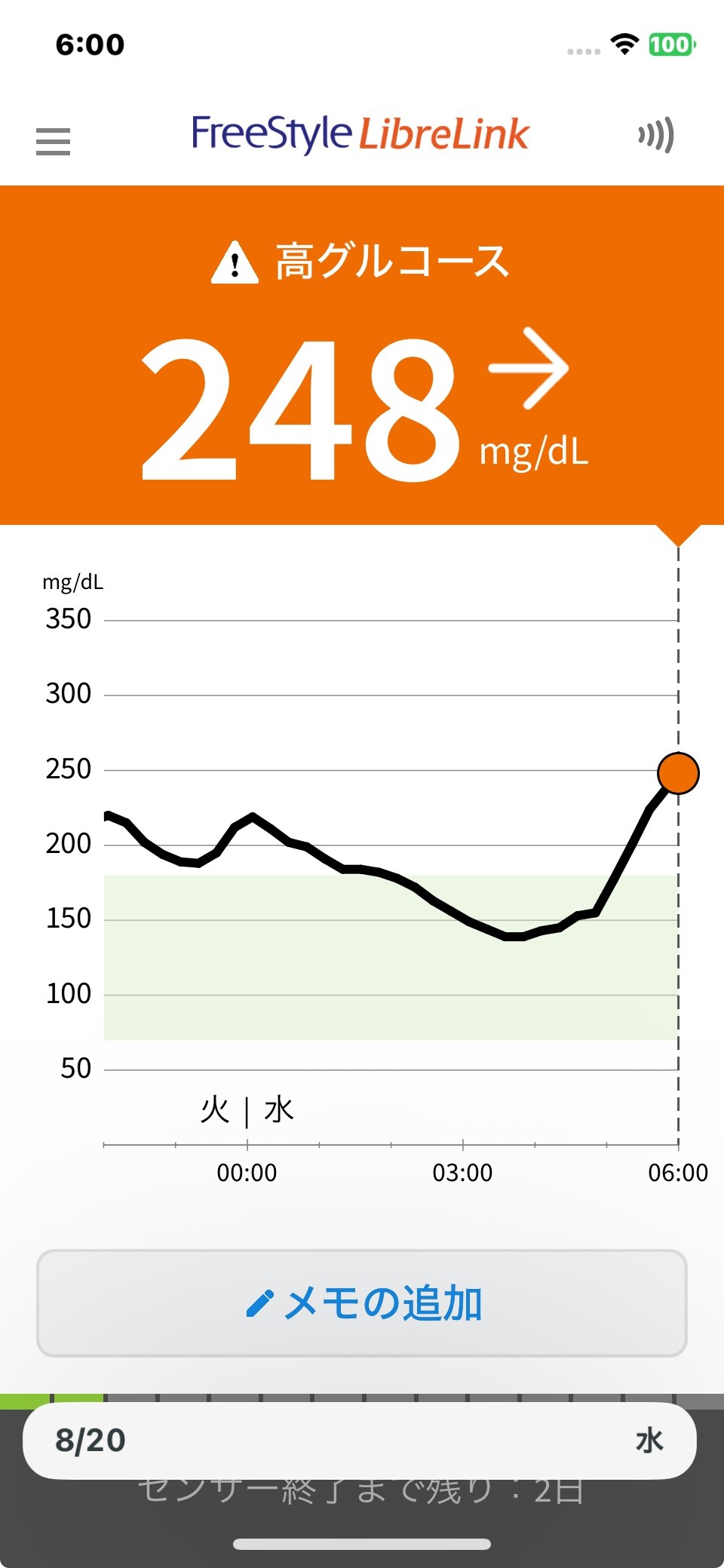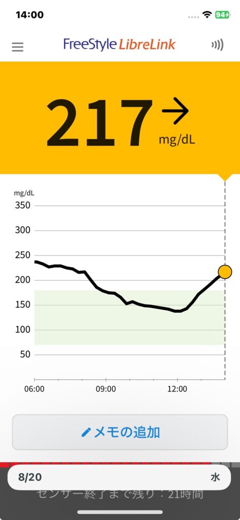 8月20日 今日の血糖値