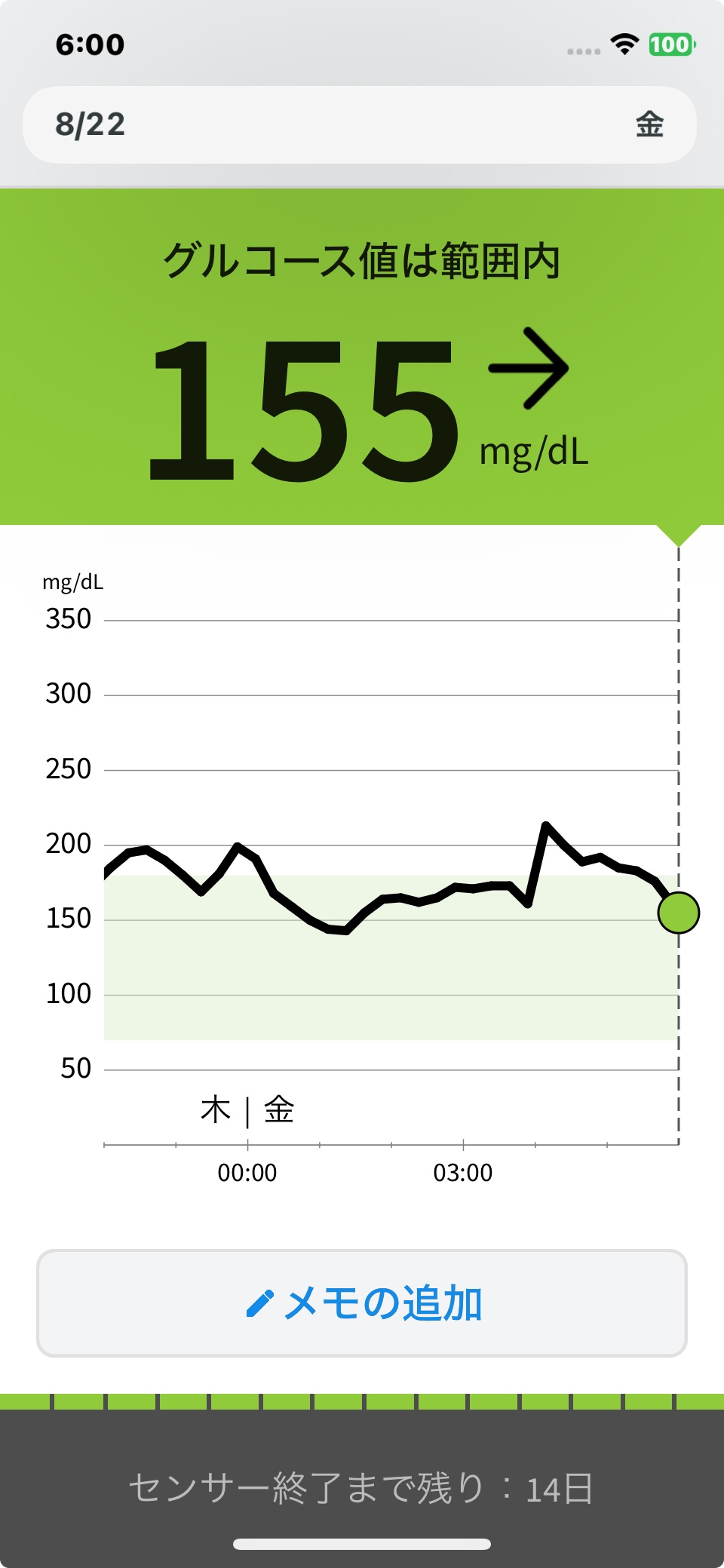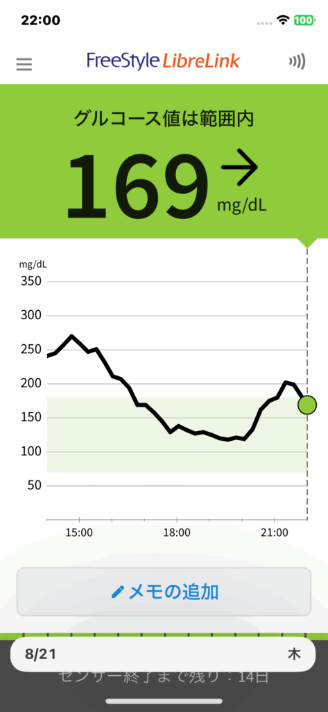 8月22日 今日の血糖値