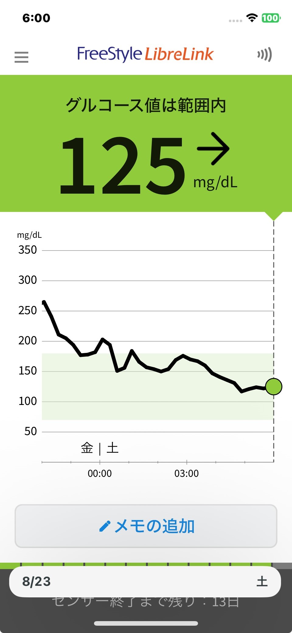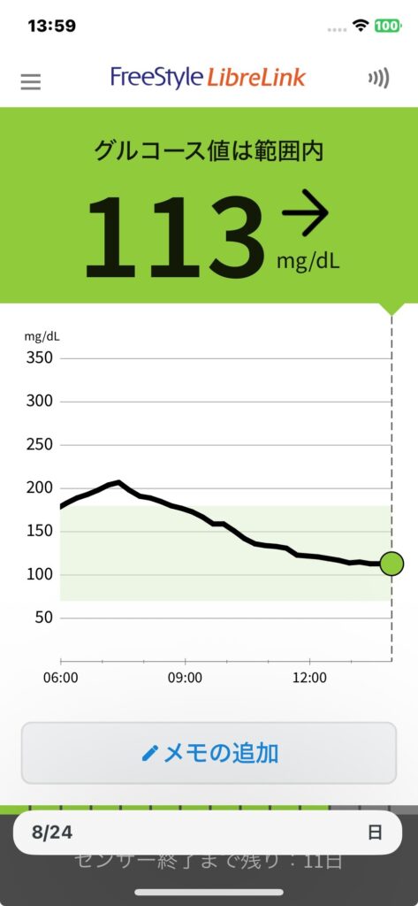 8月23日 今日の血糖値