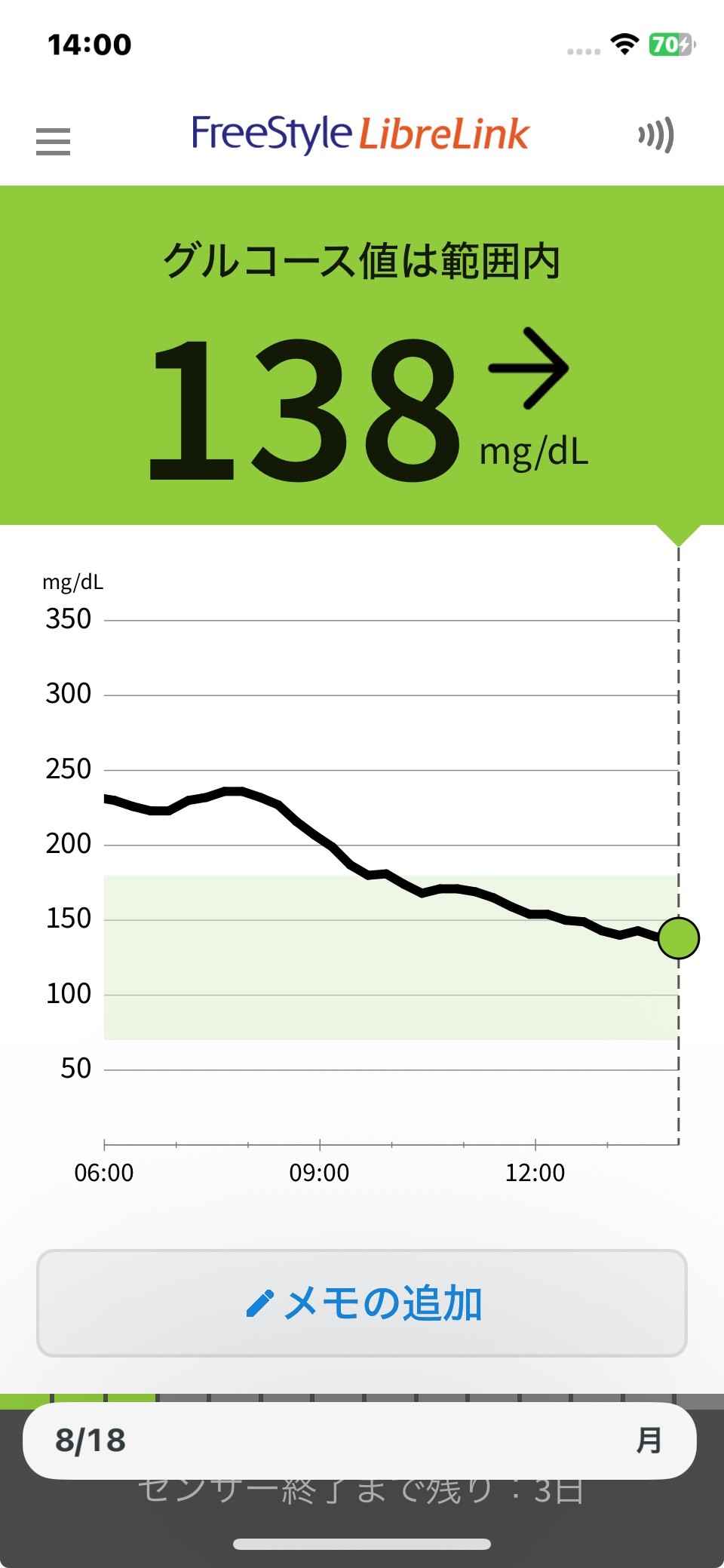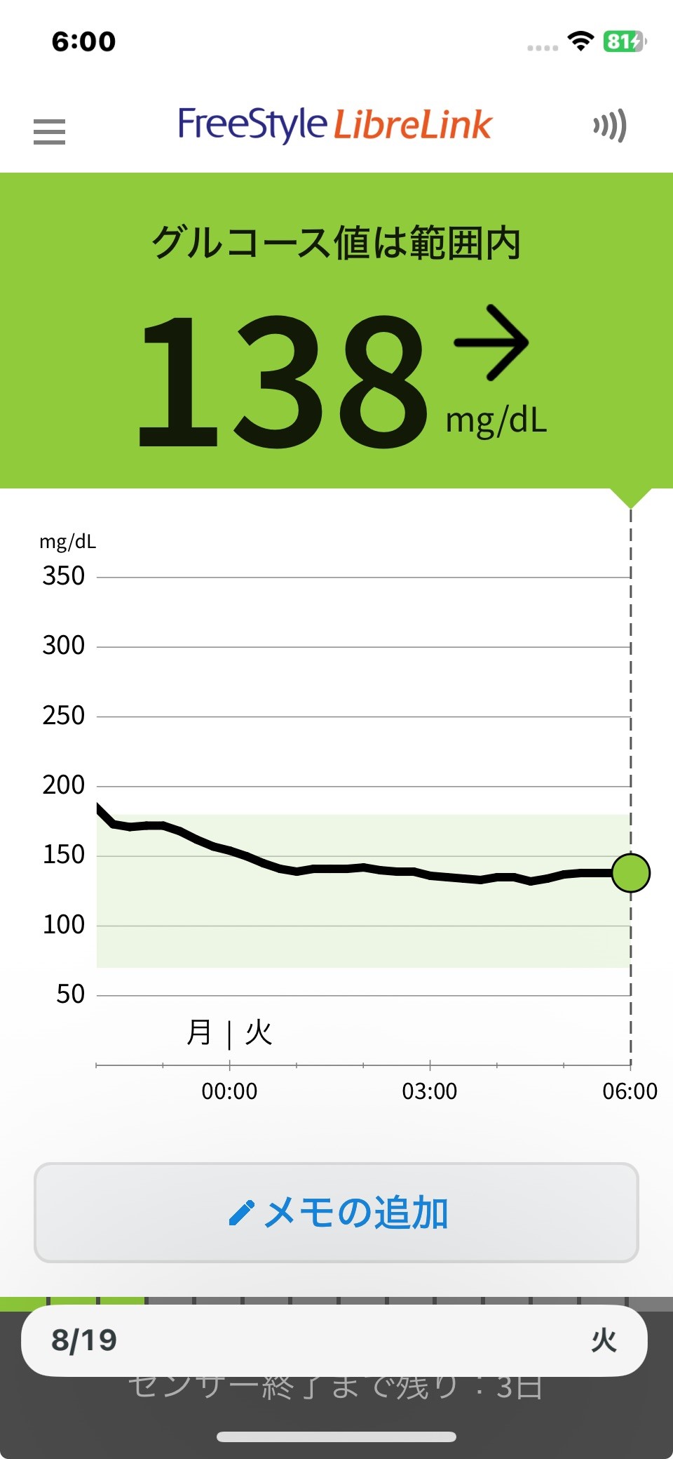 8月18日 今日の血糖値