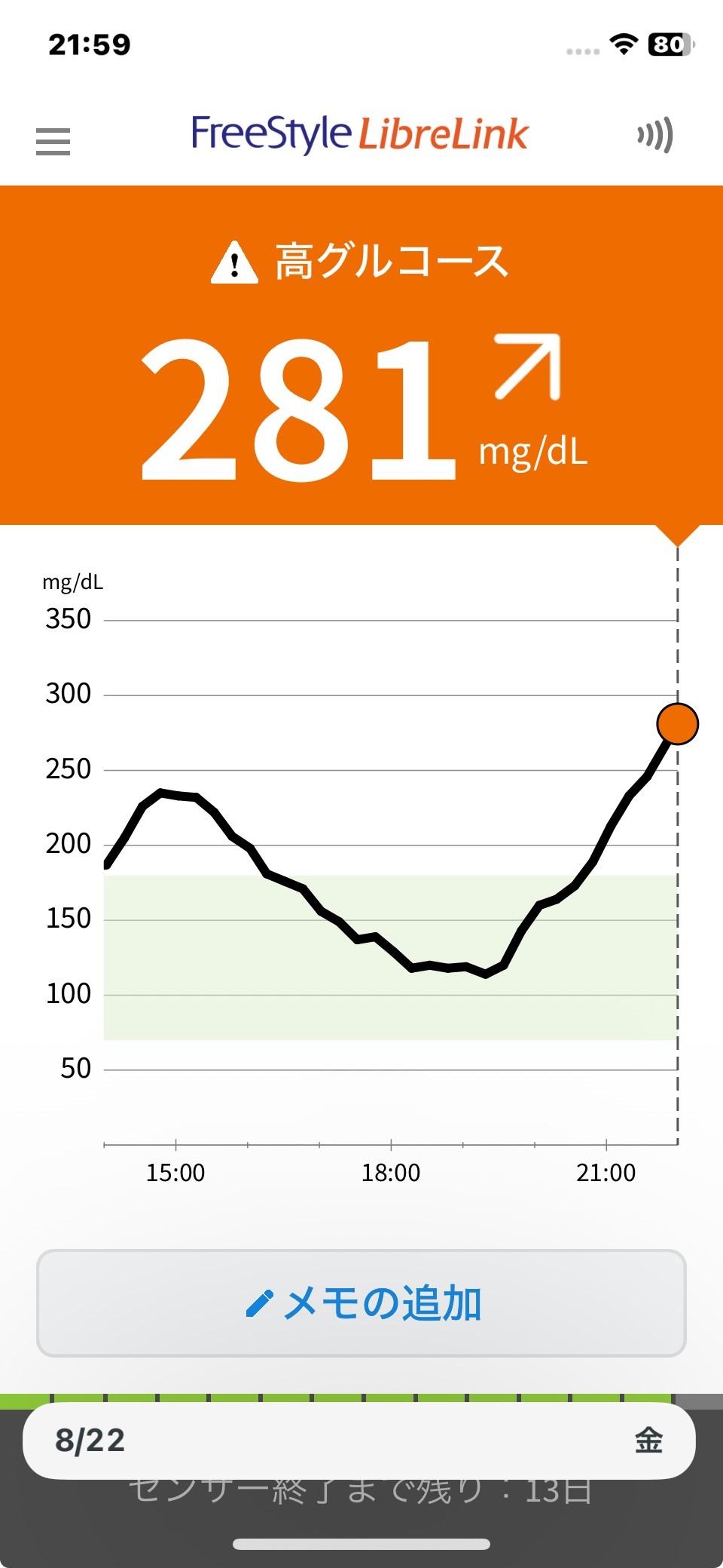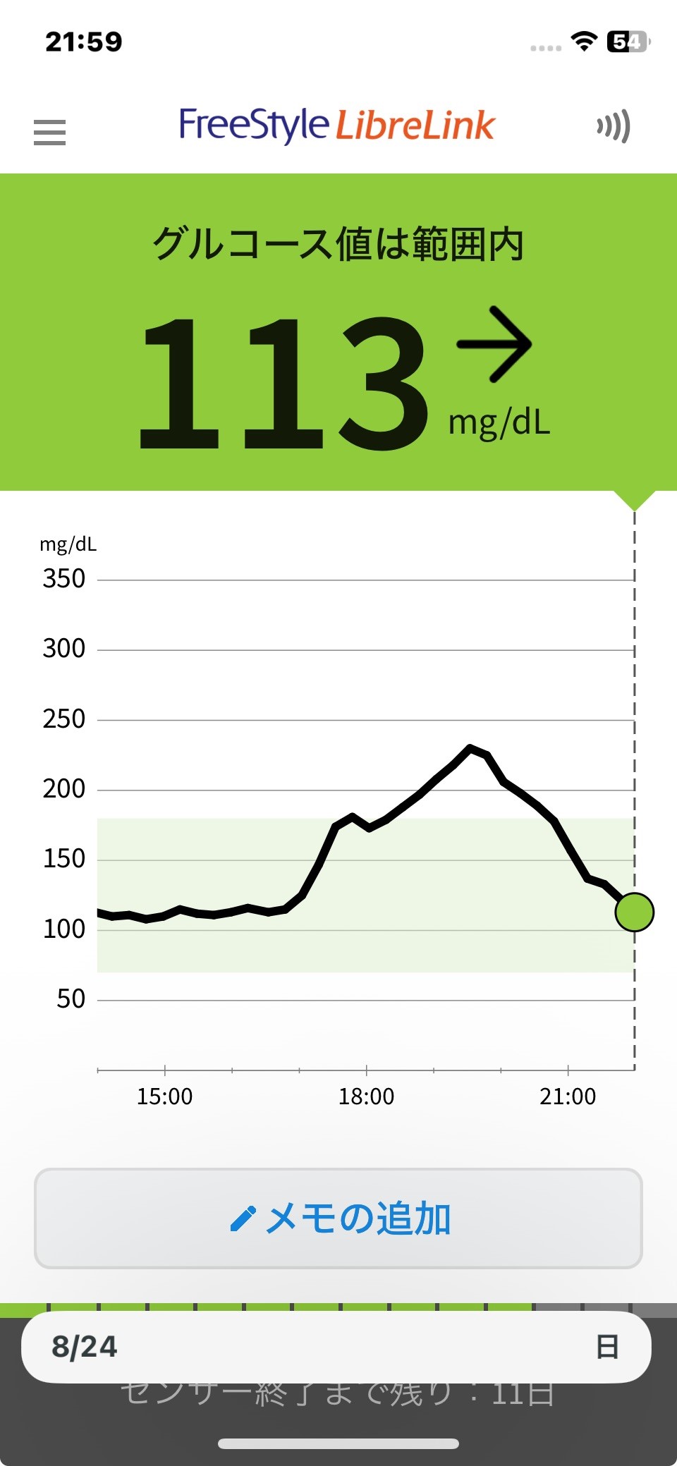 8月21日 今日の血糖値