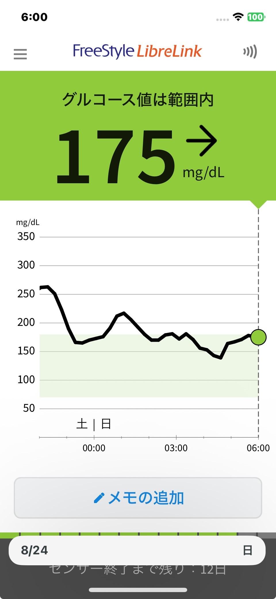 8月24日 今日の血糖値
