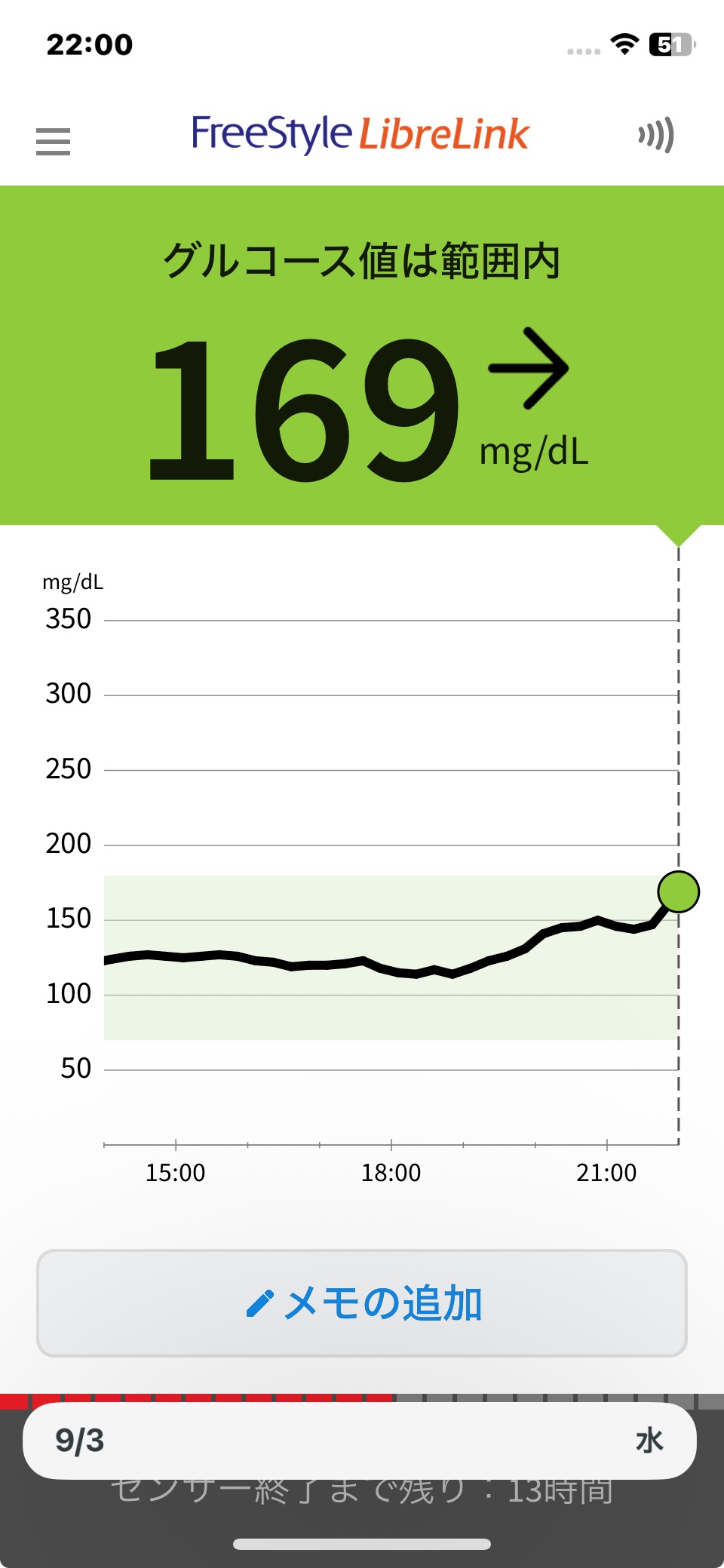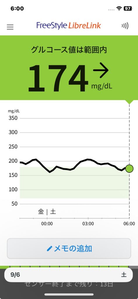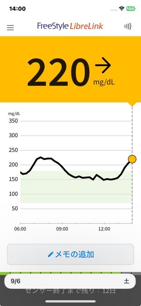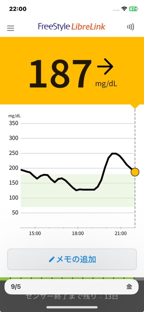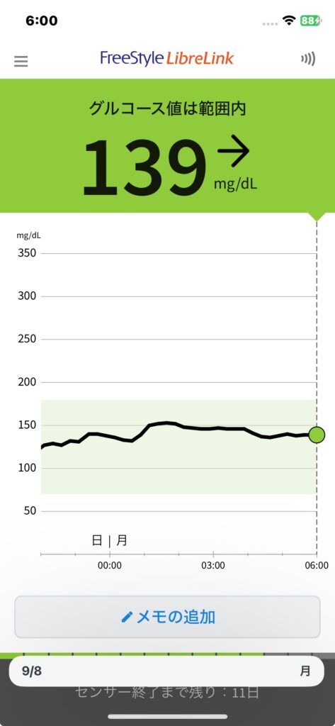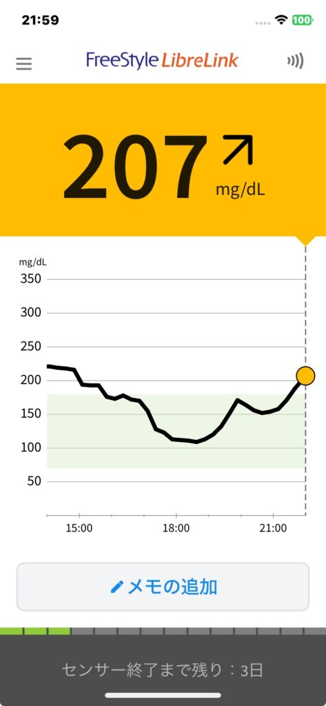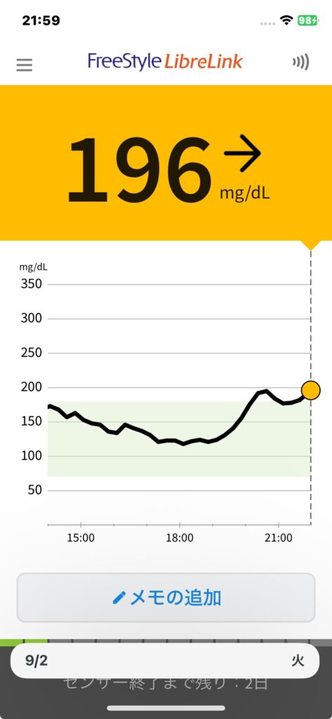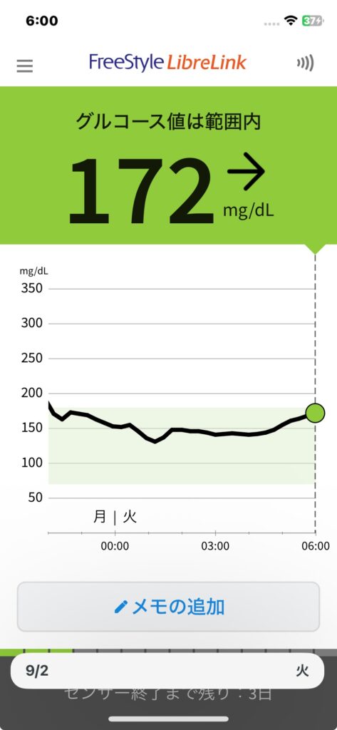 リブレを交換した。 つける位置が悪く横になると痛い。