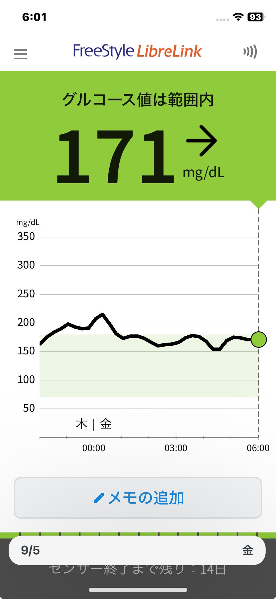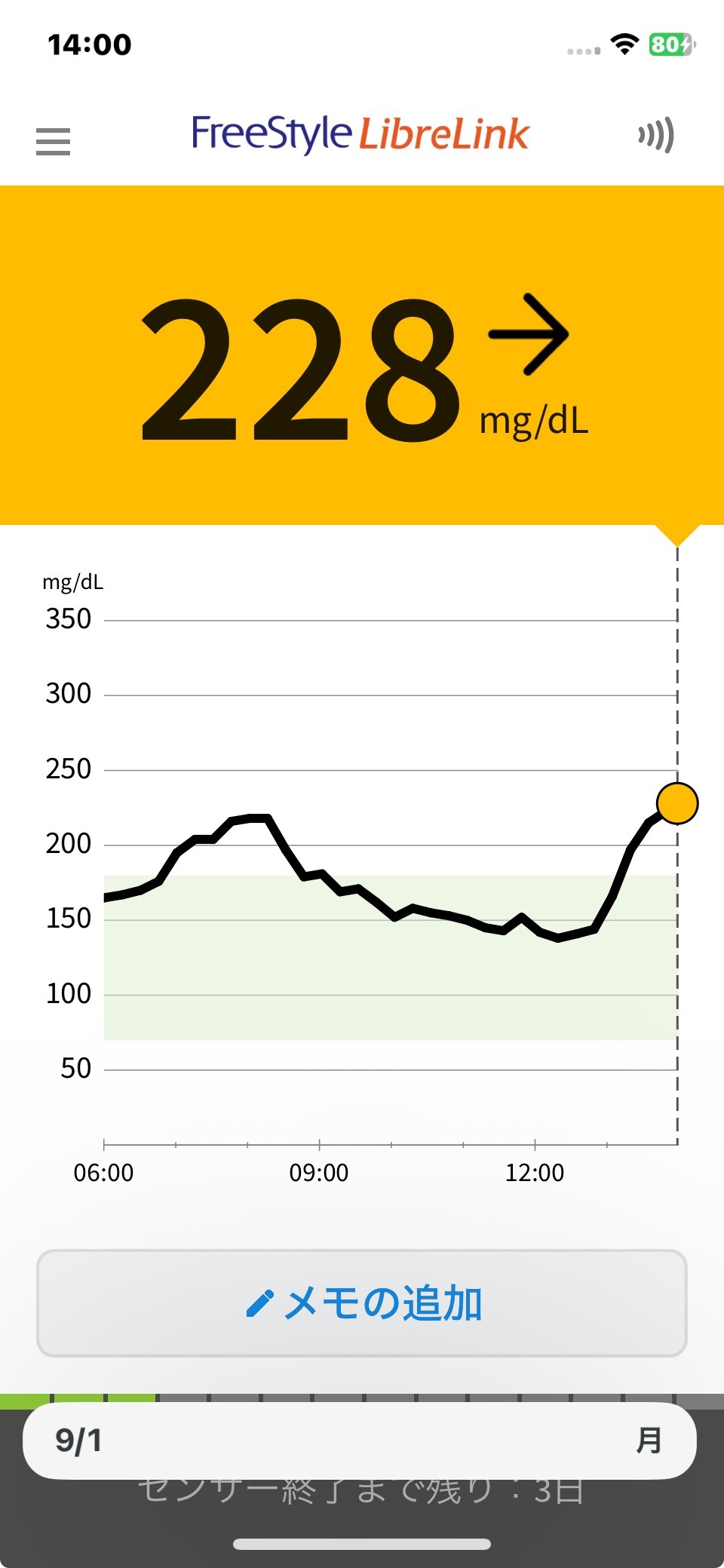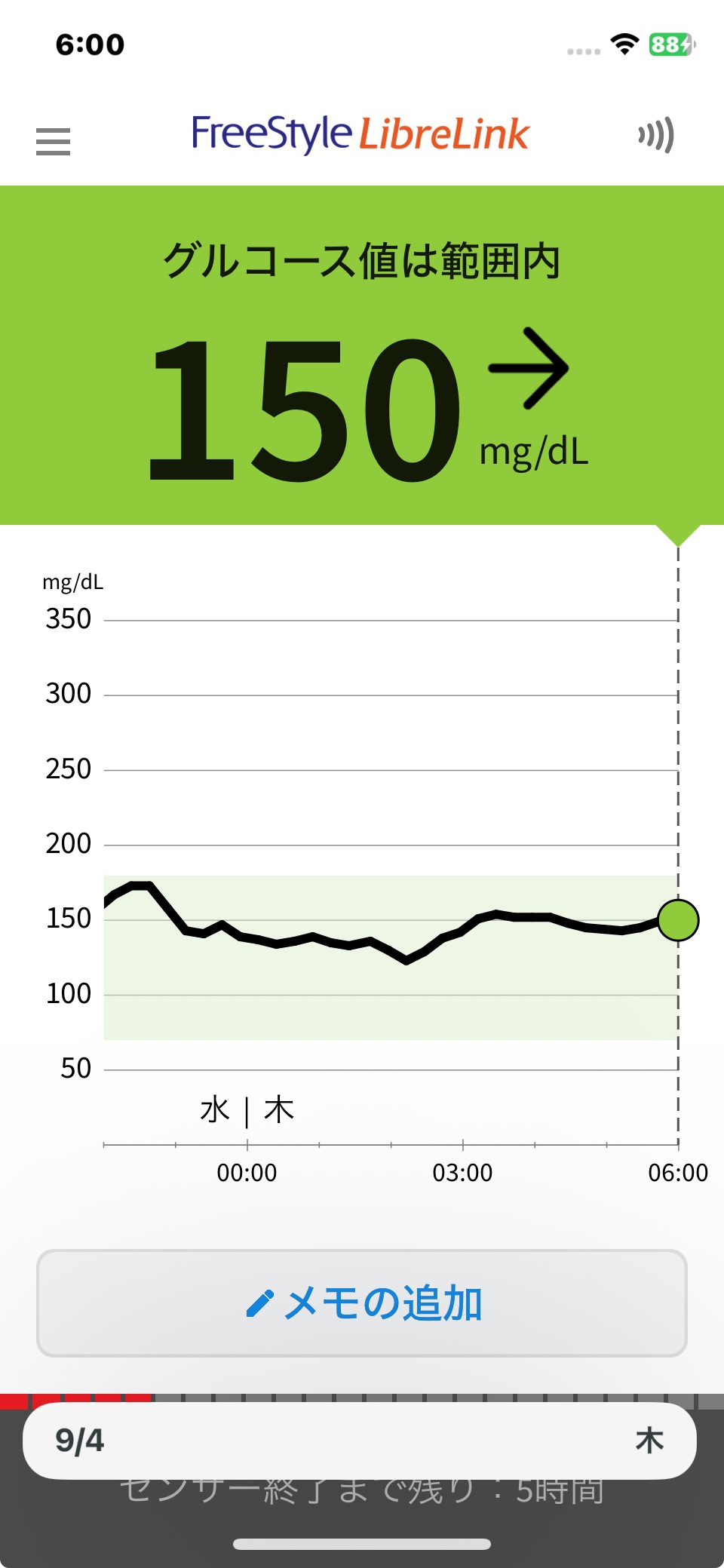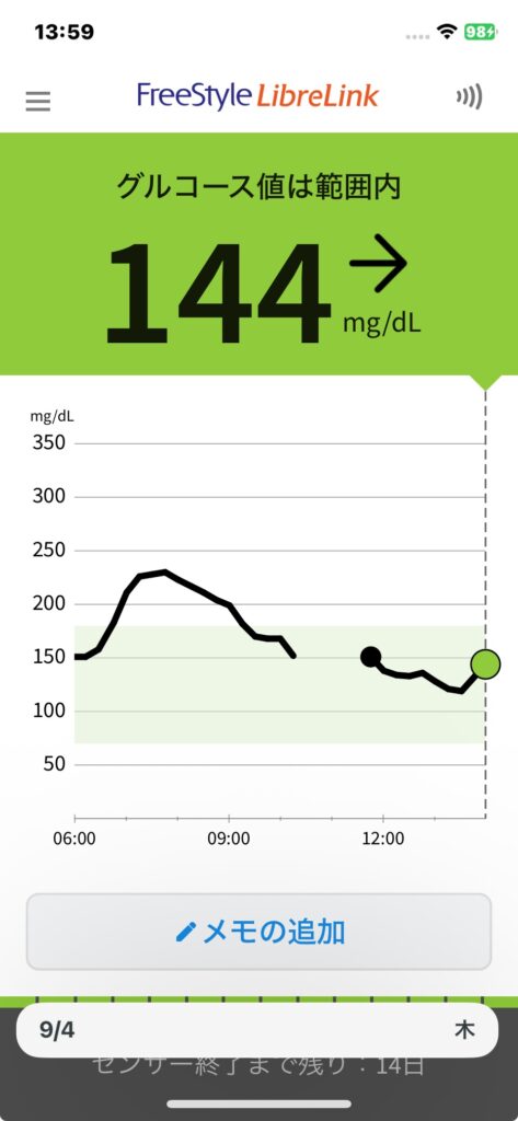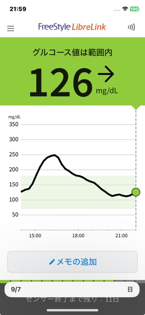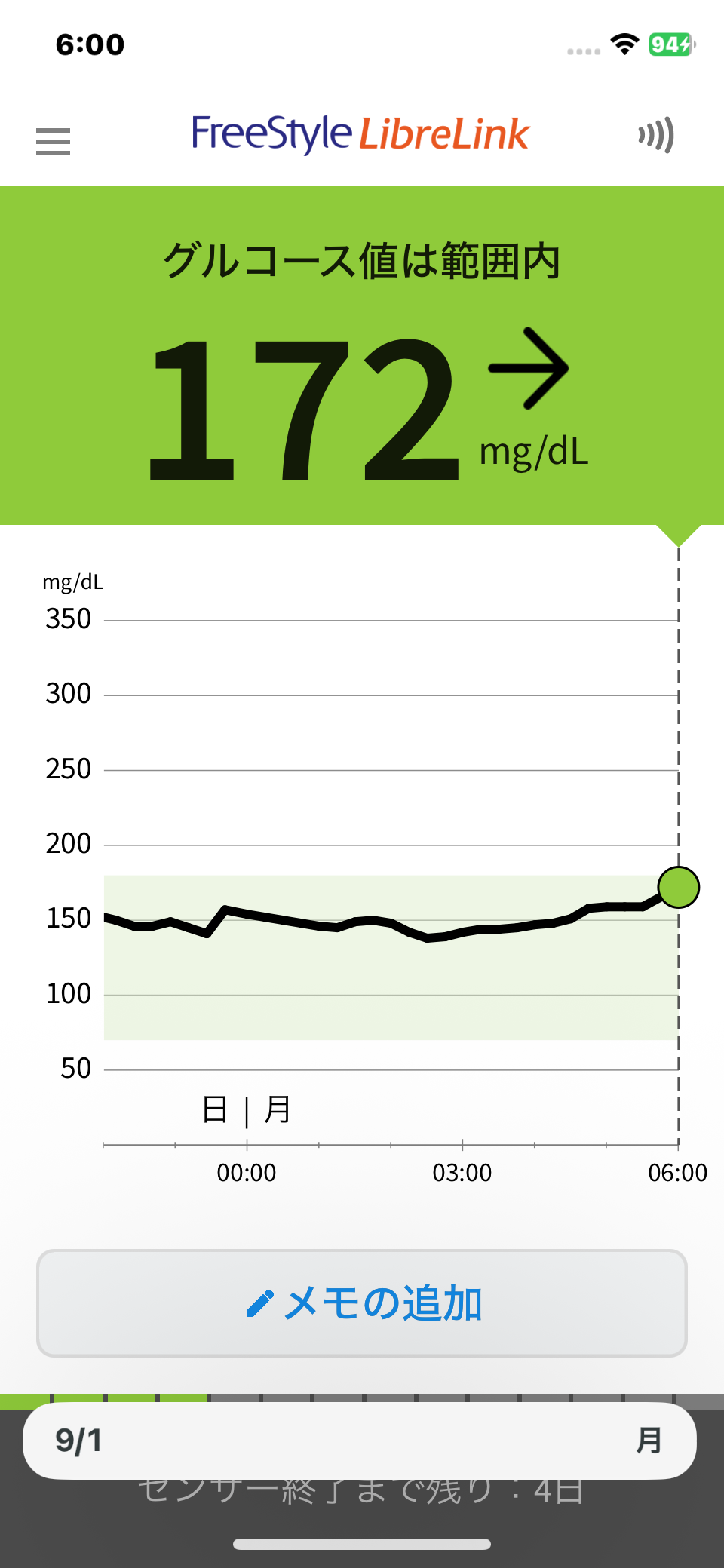 リブレを交換した。 つける位置が悪く横になると痛い。
