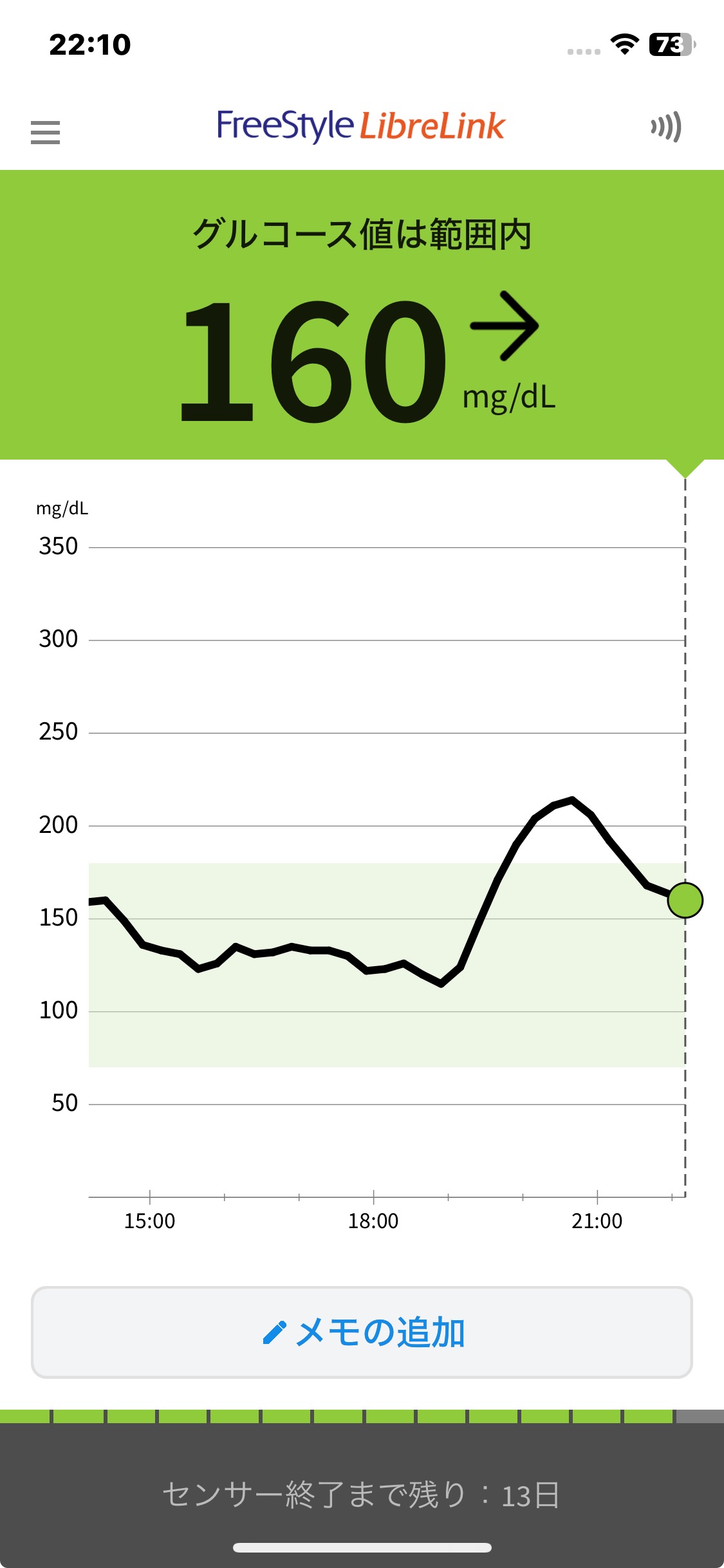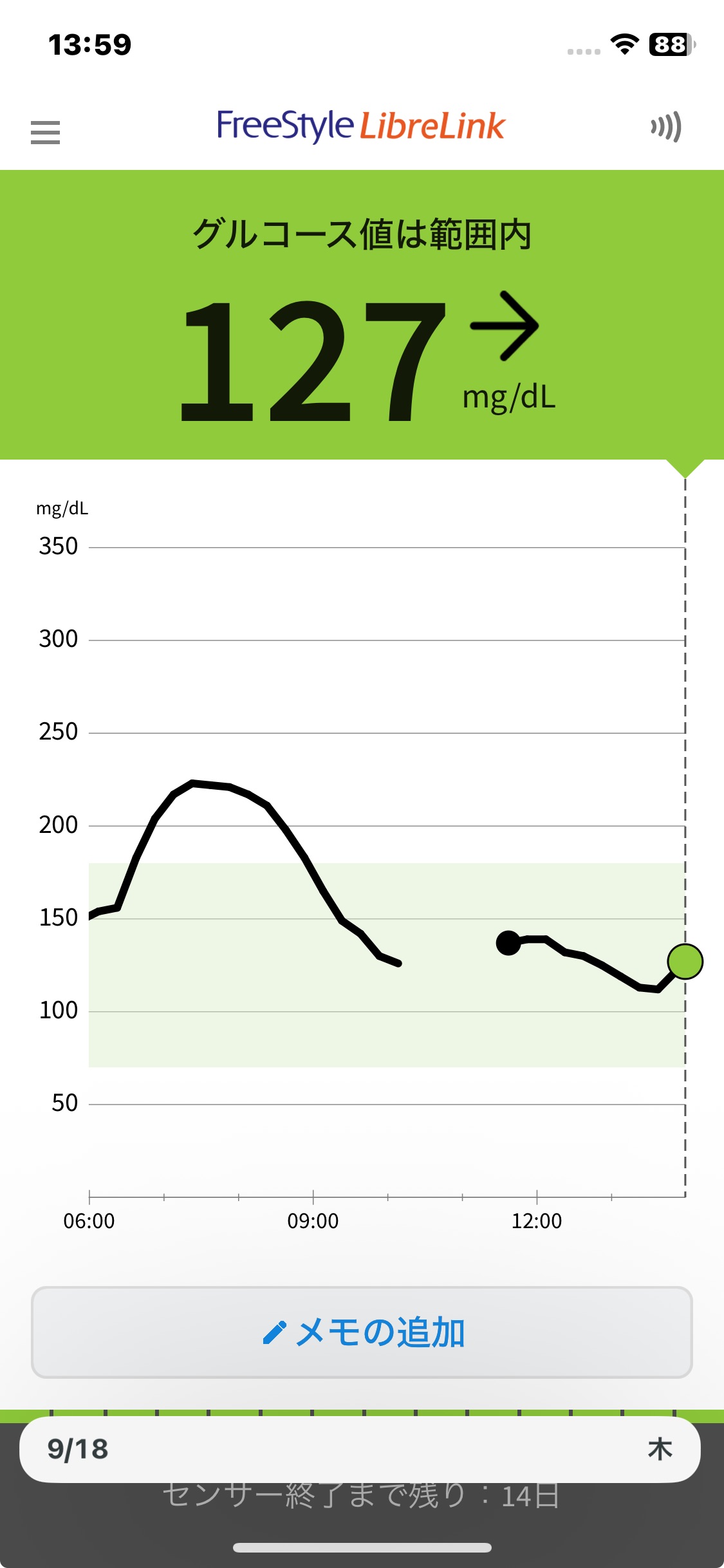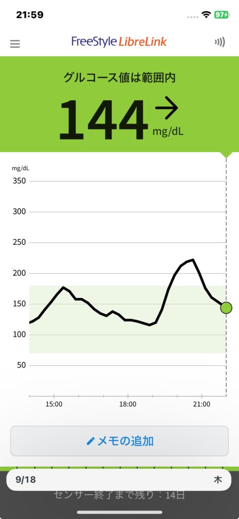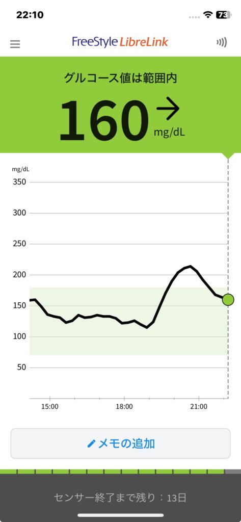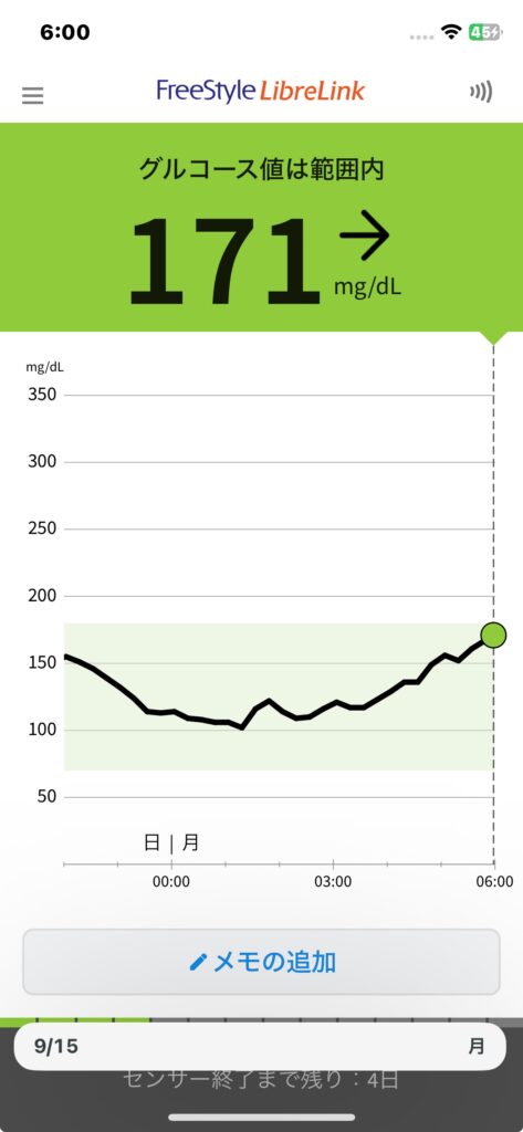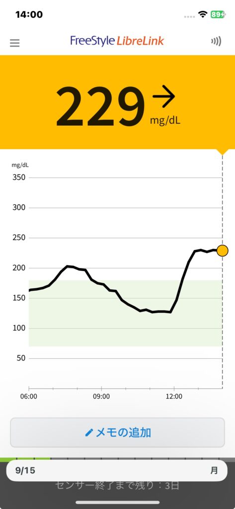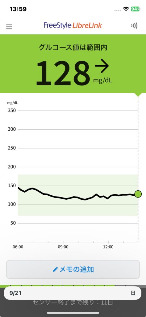 量少な目の朝食後は少し上がったが塩パンを食べた昼食後は上がらなかった。