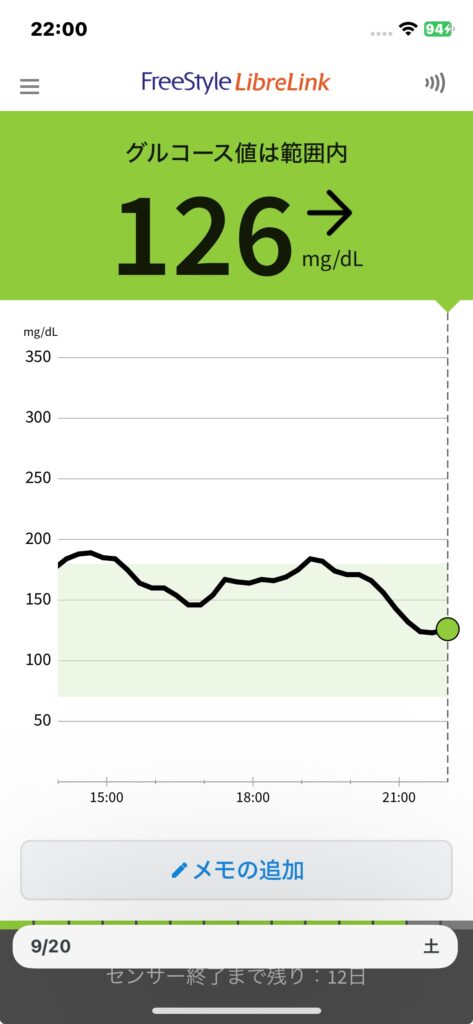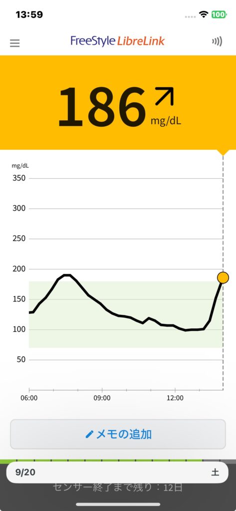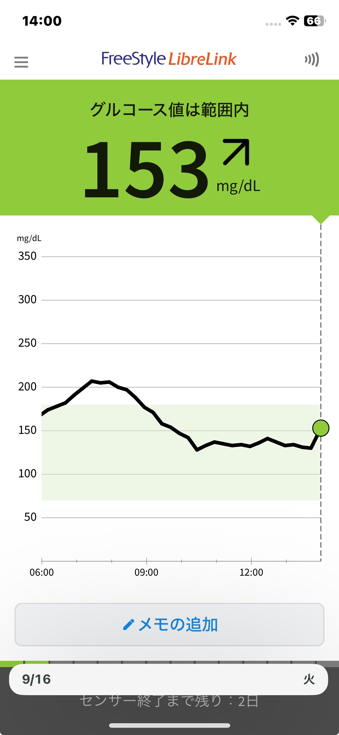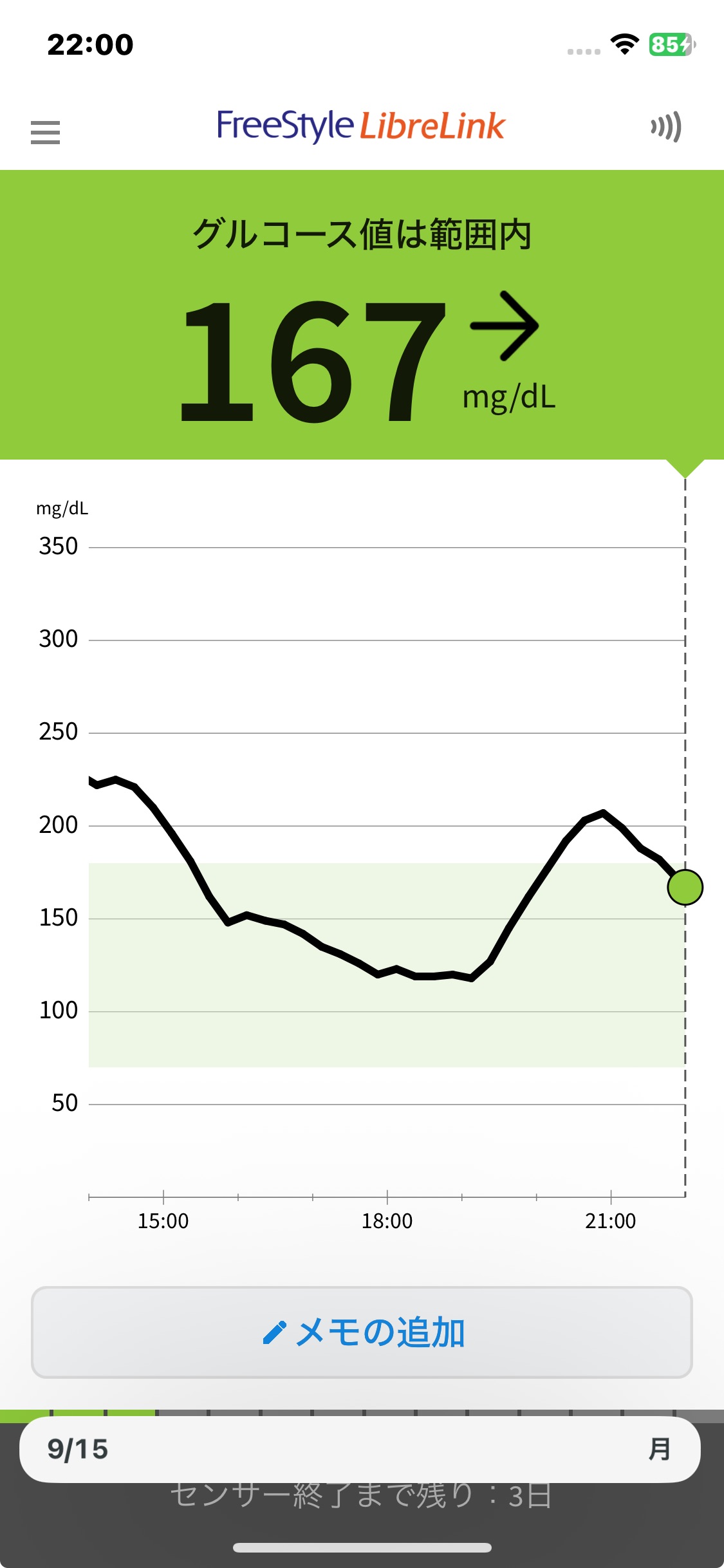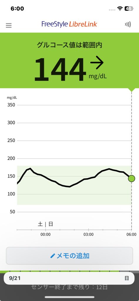 量少な目の朝食後は少し上がったが塩パンを食べた昼食後は上がらなかった。