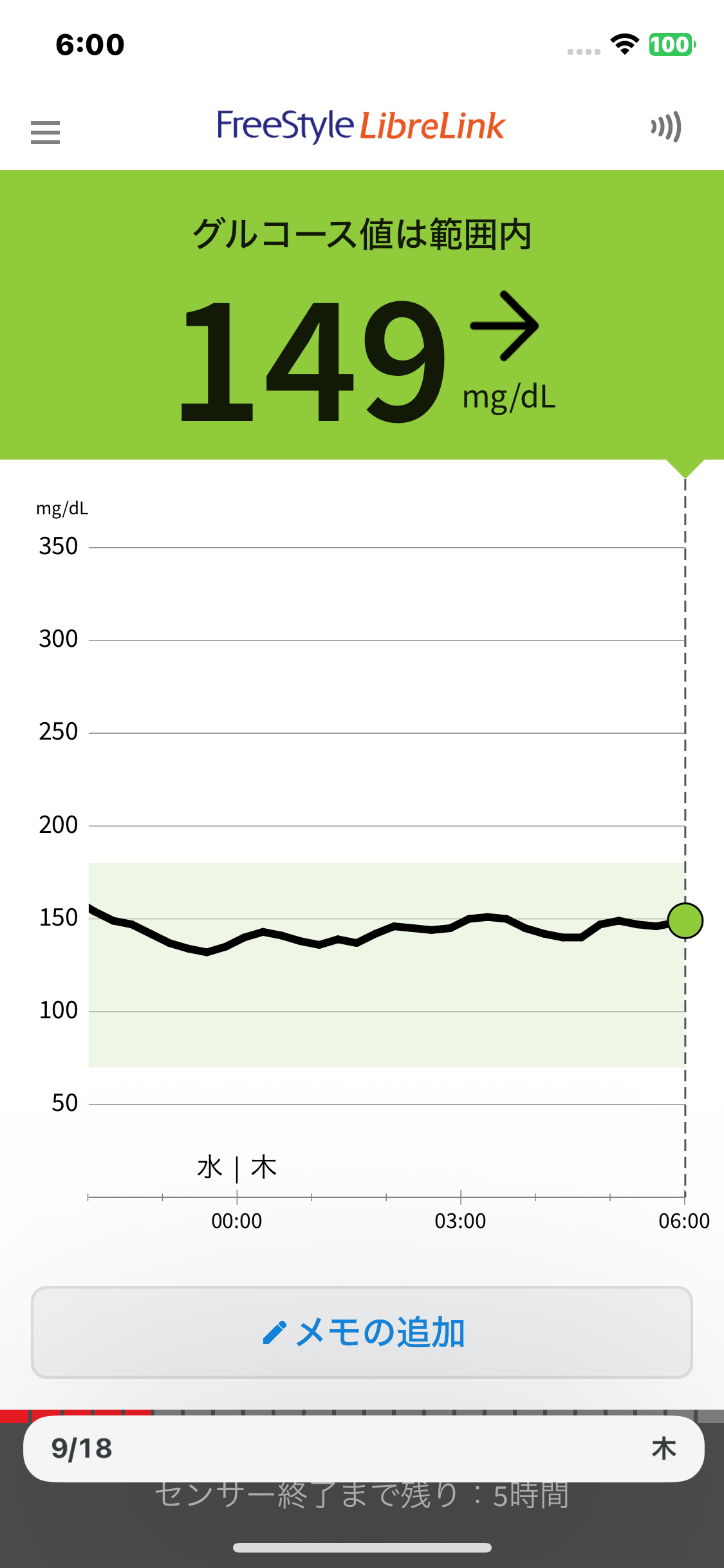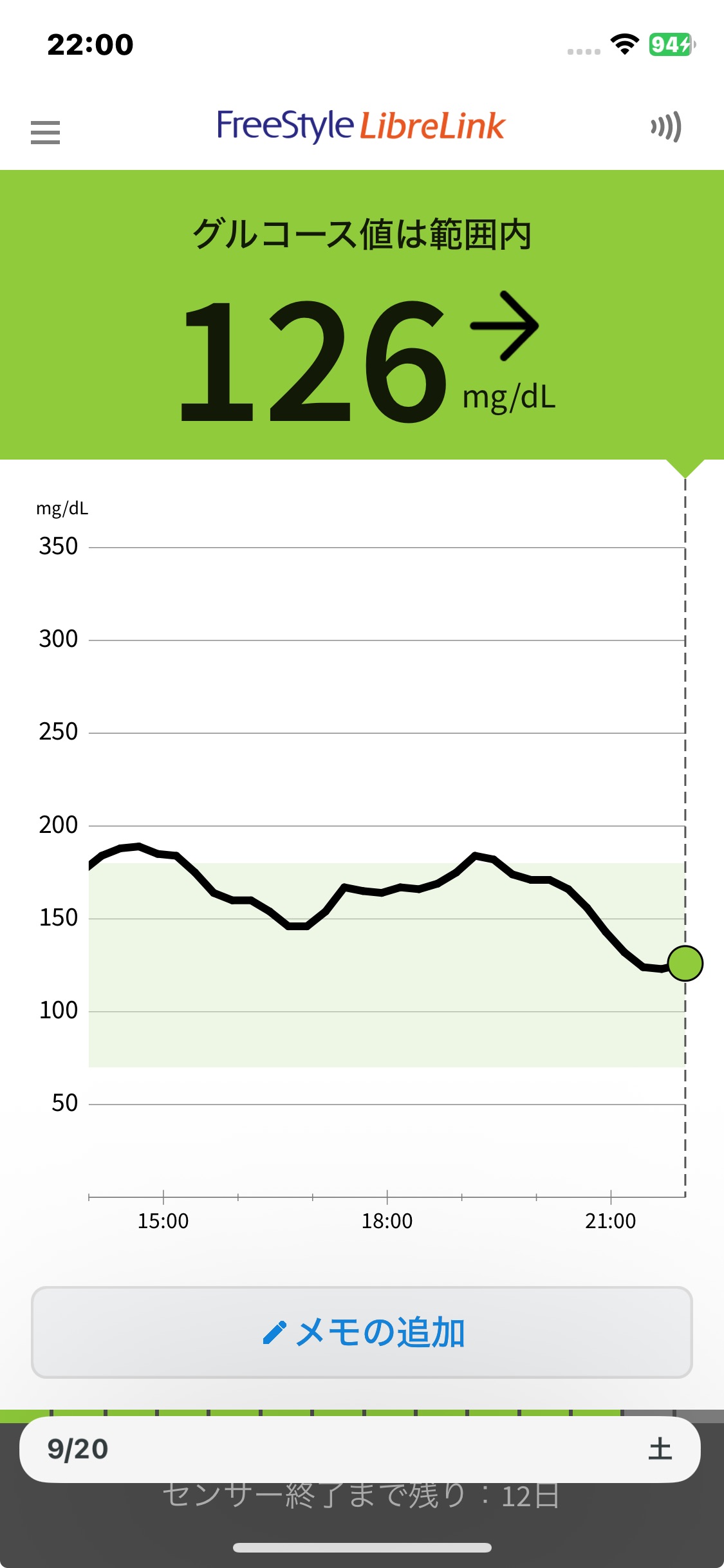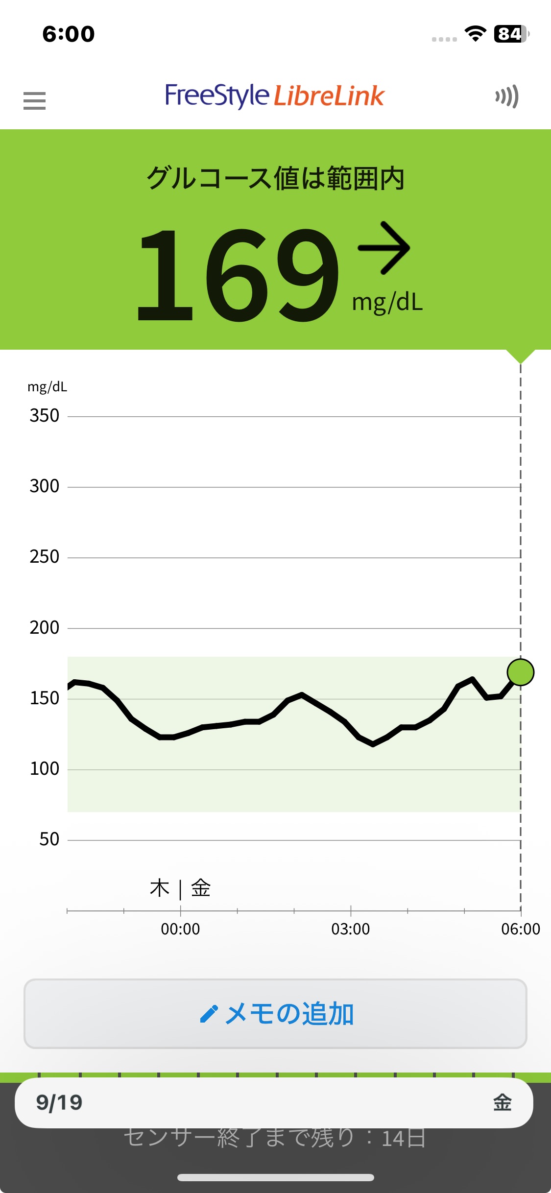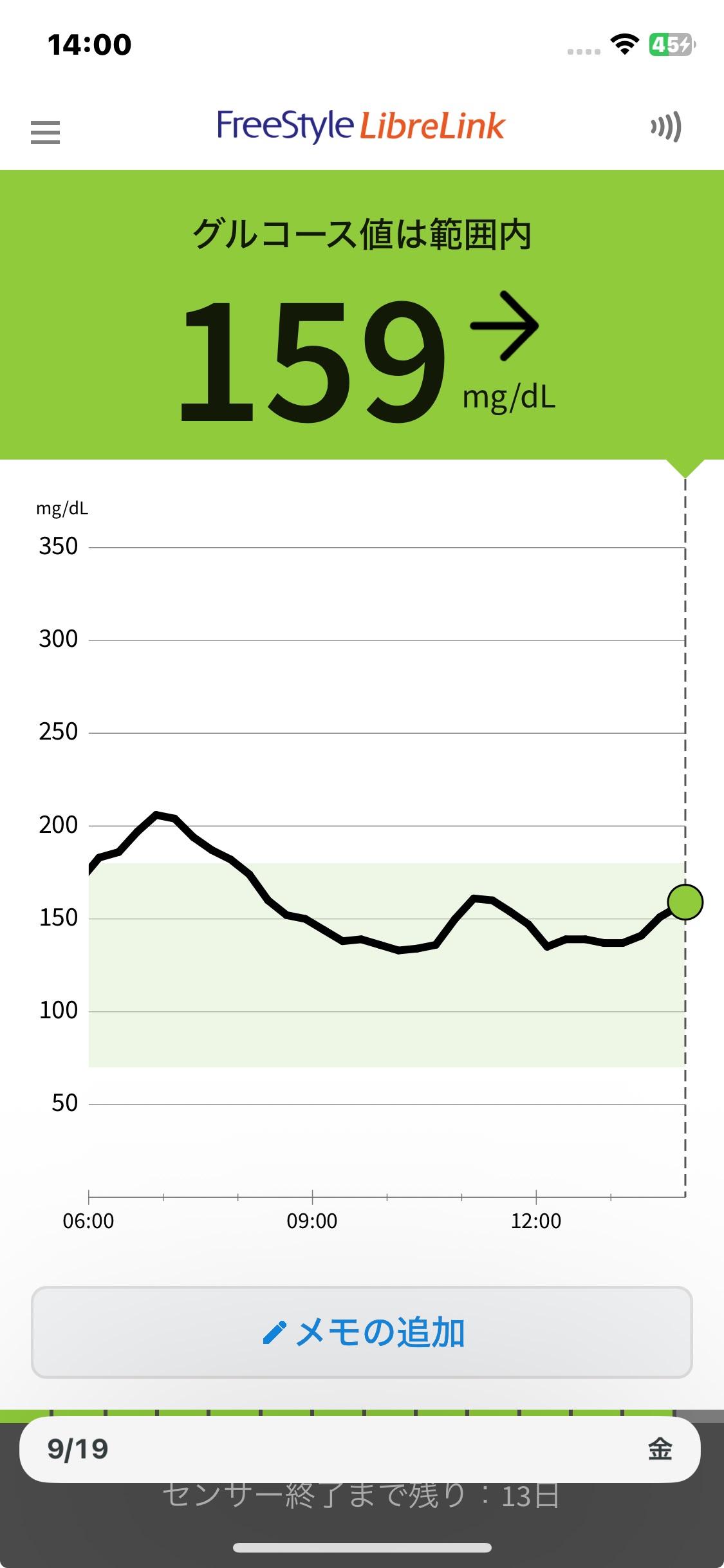 量少な目の朝食後は少し上がったが塩パンを食べた昼食後は上がらなかった。
